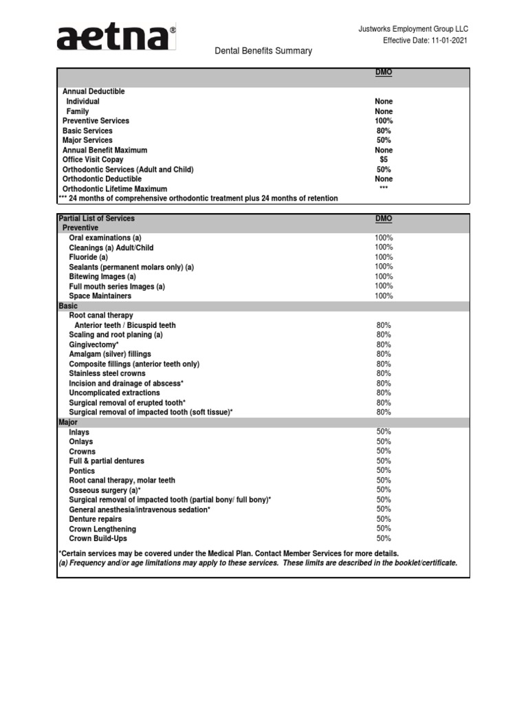 20212022aetnajustworksdentaldmobenefitsummary PDF Human Tooth Dentist